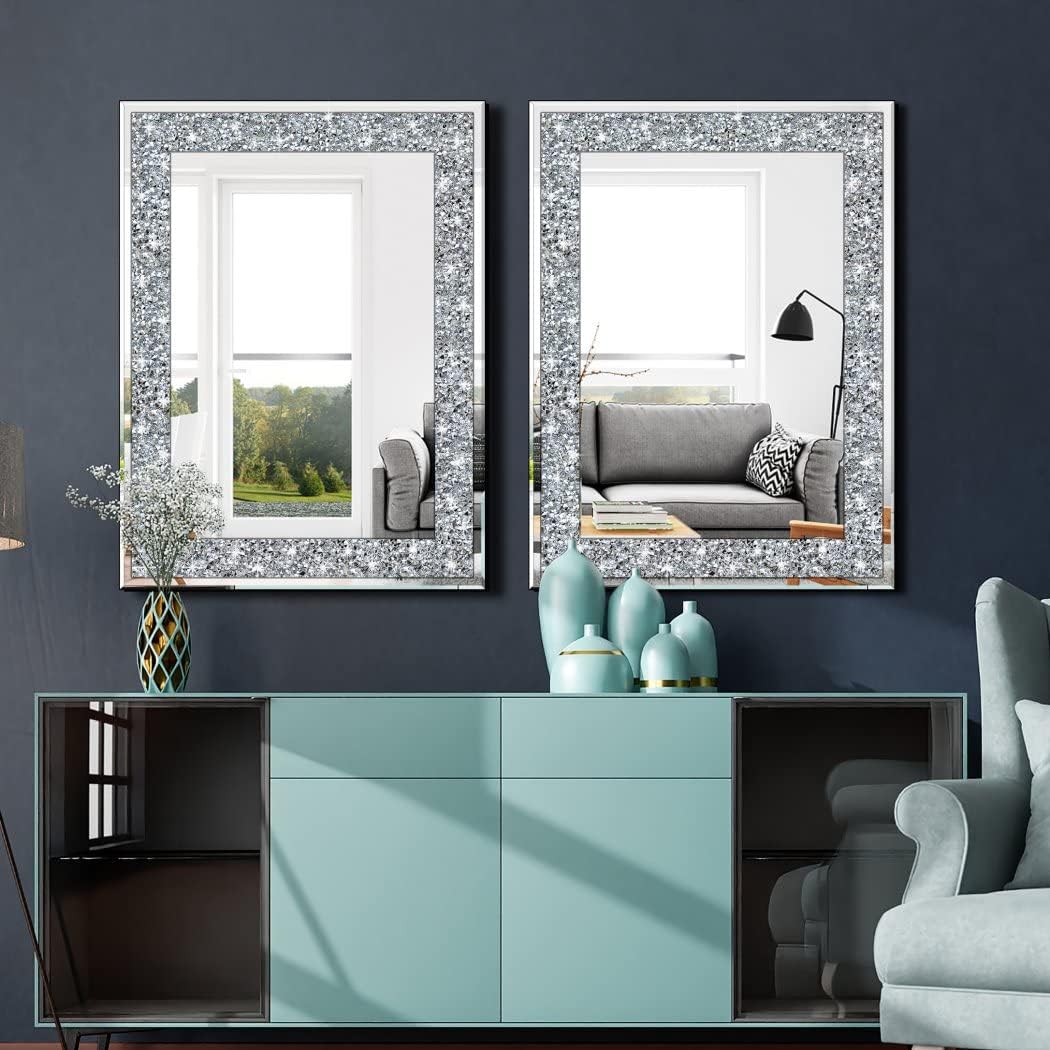 Crystal Crush Diamond Rectangle Silver Mirror for Wall Decoration 24x32inch Wall Hang Frameless Mirror Acrylic Diamond Decor.