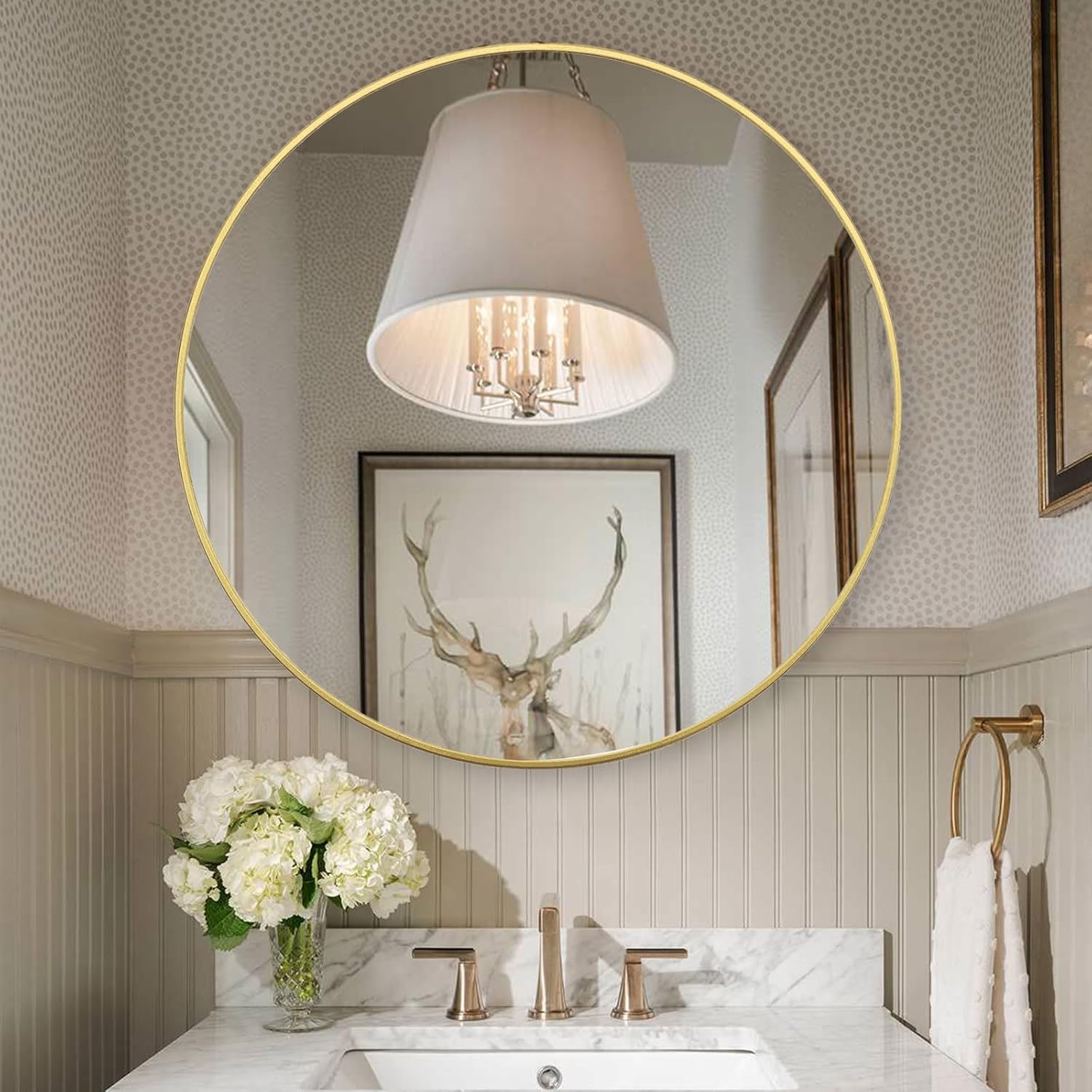 Large Round Gold Mirror 39 Inch, Big Circle Mirror, Wall-Mounted Decoration, Metal Framed Mirror for Living Room Entryway and Bedroom, Easy to Install