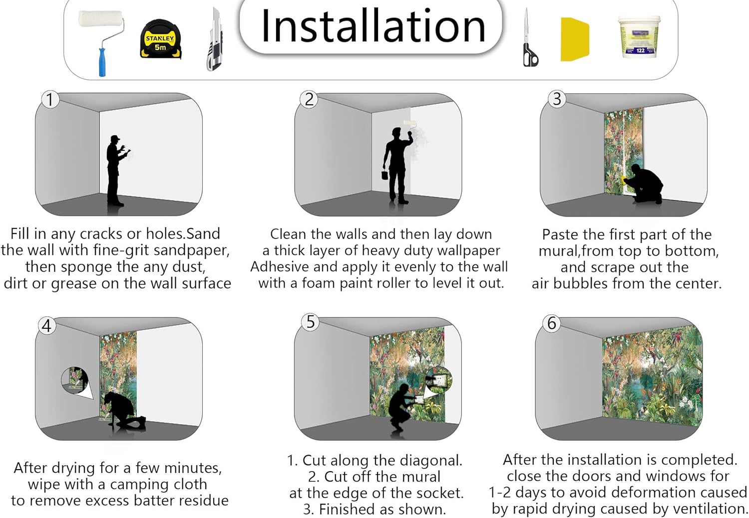 Tropical Plant Forest Wallpaper Mural Animals and Flowers Jungle Landscape Wall Mural for Bedroom Living Room Bathroom